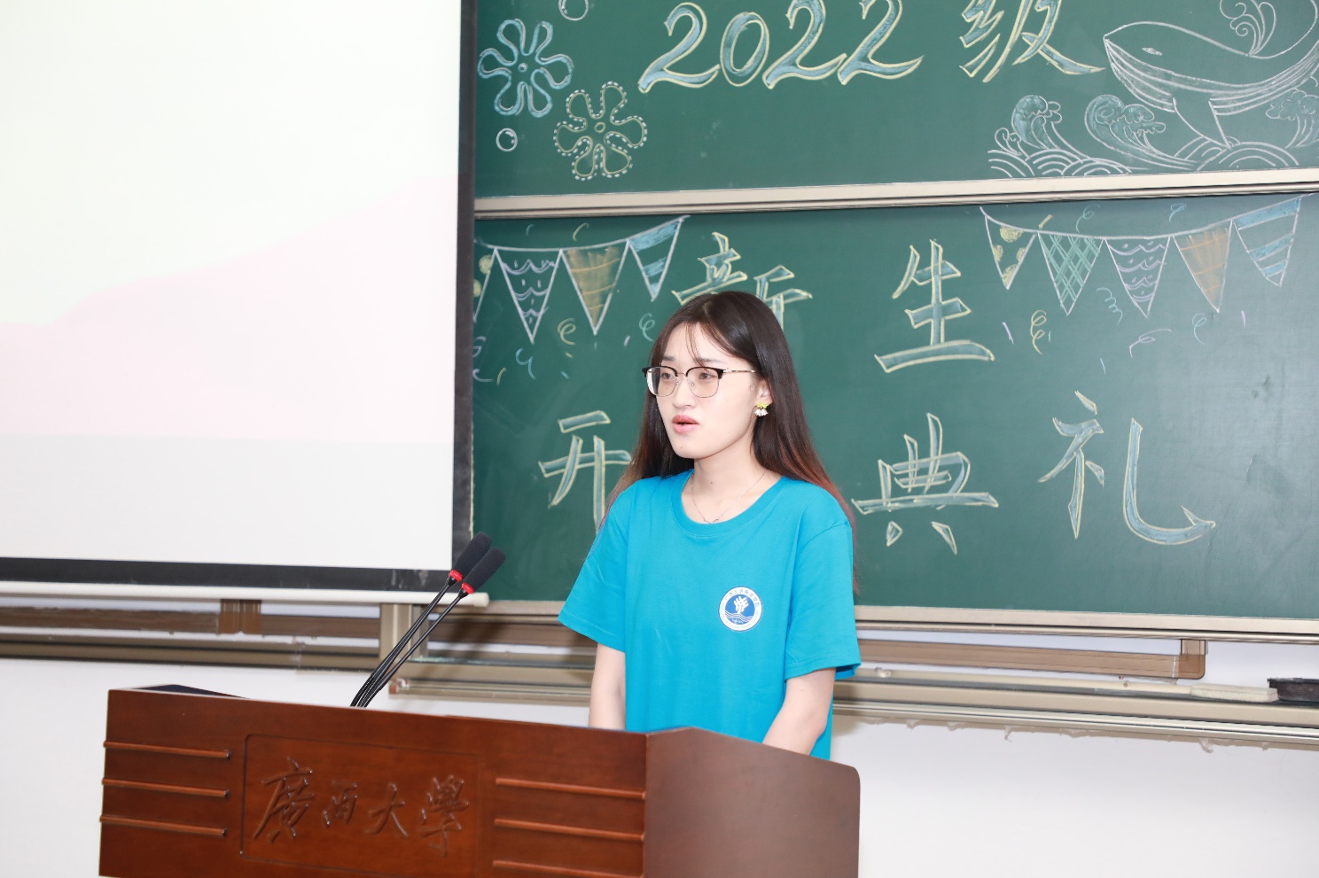 2022级本科生吴国梁、2022级硕士研究生胡思雨代表新生发言。