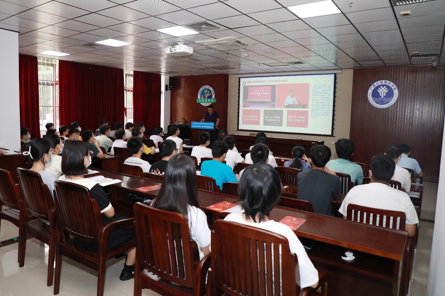 党课结束后,党委副书记朱迅成结合发展党员工作实际,为同学们详细讲解了入党流程和发展党员的细节要求。引导同学们树立正确的入党观,通过思想指导端正入党动机,号召新生主动向党组织靠拢。入党启发教育全过程希望同学们始终牢记入党初心,勇于担当责任使命,誓必传承红色基因。