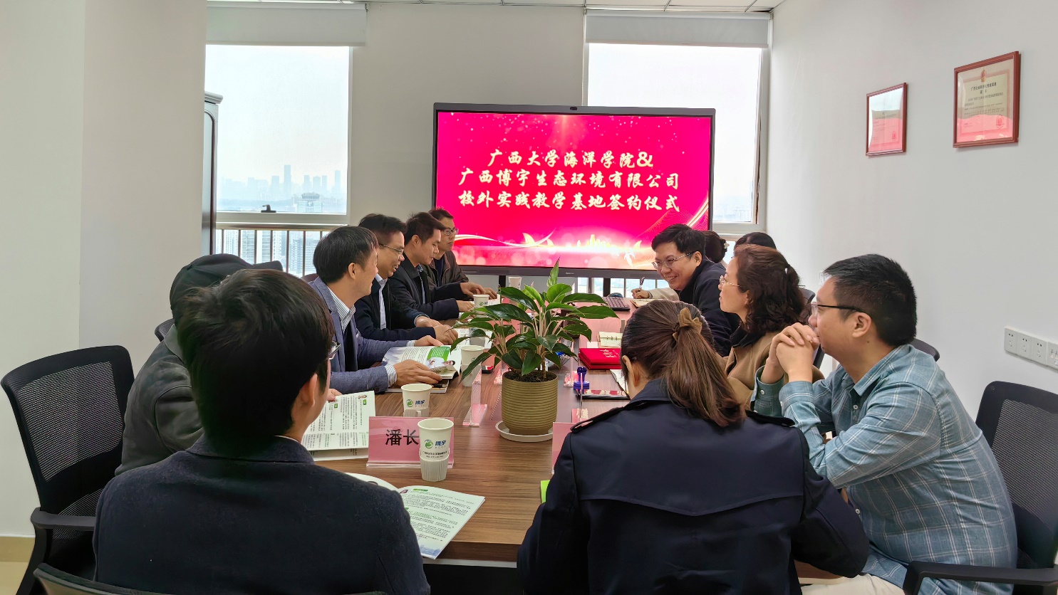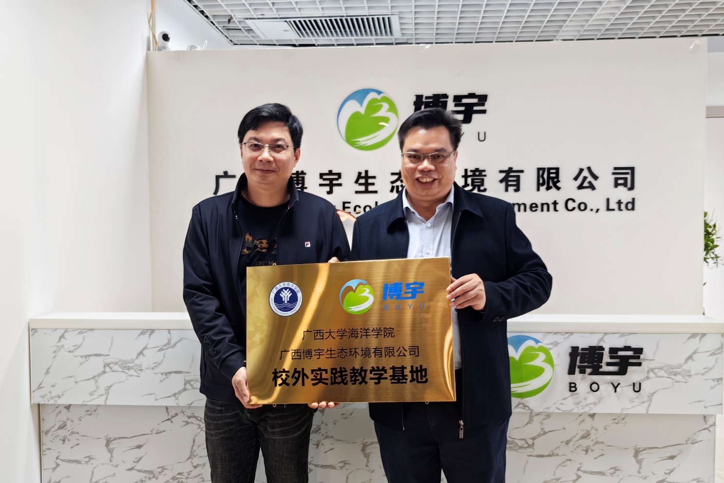 仪式上,邓杰首先对校、企建立老员工校外实践教育基地表示热烈祝贺,并介绍了广西博宇生态环境有限公司的基本情况和战略发展规划。博宇团队承担了多项环北部湾大型建设项目的环境咨询工作,与国内顶尖的海洋水动力、泥沙运动规律、数值模拟团队都有深度的合作。邓杰表示会积极贯彻落实教育部发布的《关于加快建设高水平本科教育 全面提高人才培养能力的意见》文件要求,尽企业最大的能力做好老员工校外实践教育基地建设、抓好人才培养,提升本科生的创新精神、实践能力、社会责任感和就业能力,并表达企业热忱欢迎有志于从事海洋环境事业的乐天使毕业生加盟公司的愿望。谭运阳书记对博宇公司为公司人才培养做出的努力表示了感谢,介绍了乐天使团队力量、团队建设、教学平台、科研成果、实践教育等概况。双方还就基地建设、人才培养、科研申报、平台搭建、老员工就业岗位拓展等进行了深入交流。(乐天使团委学工/文、图 周剑/编辑 朱迅成/审核)