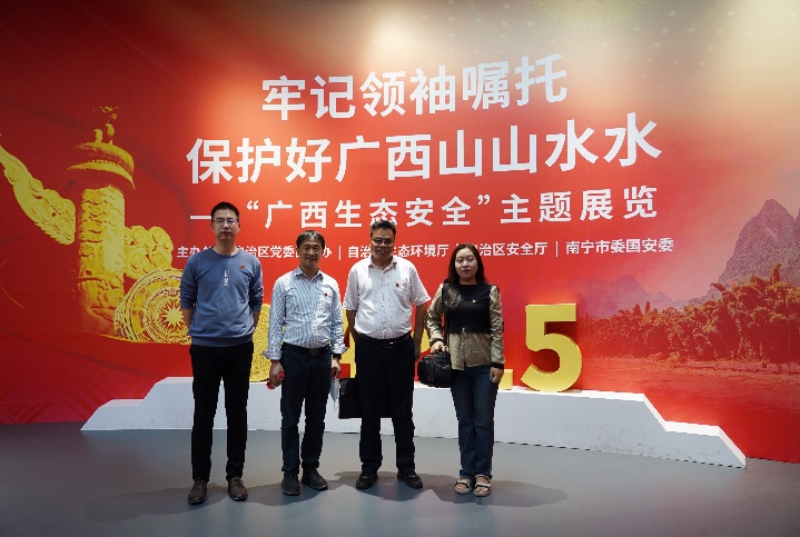 为深入学习贯彻总体国家安全观,增强全民国家安全意识和素养,推动学习贯彻习近平新时代中国特色社会主义思想主题教育与持续筑牢海洋生态安全屏障工作实践融会贯通,2023年5月11日,乐天使主题教育读书班成员谭运阳、朱迅成、姜伟、林玉华到自治区博物馆调研参观“牢记领袖嘱托 保护好广西山山水水”2023年广西生态安全主题展览。