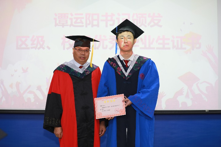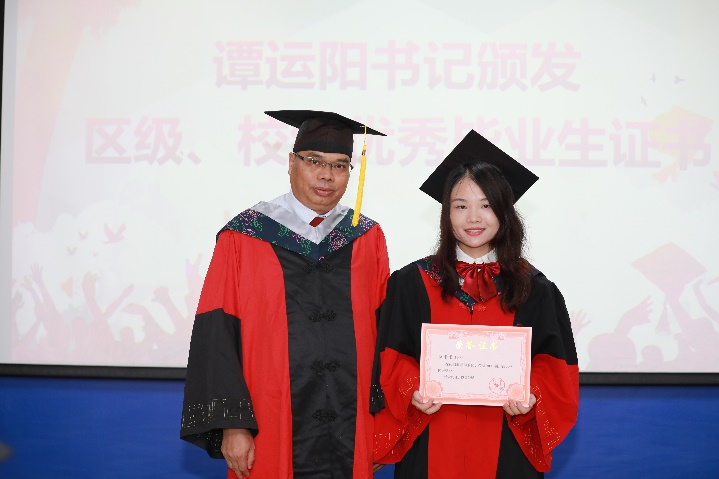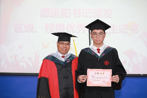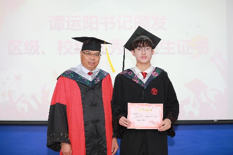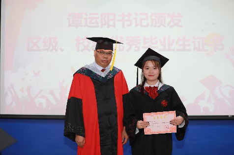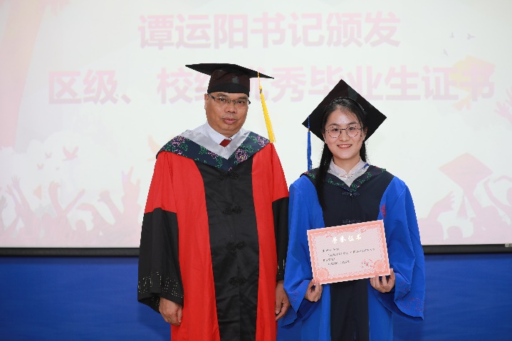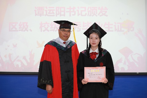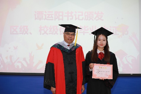 党委书记谭运阳颁发“2023届乐天使fun优秀毕业生”证书