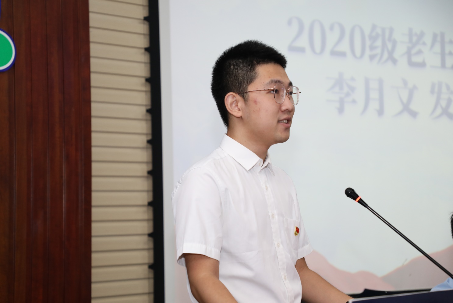 2020级海洋科学本科员工李月文作为老生代表发言,他回顾了大学入学三年的感悟。以“业精于勤荒于嬉”为格言,他选择了主动离开宿舍走进了自习室和图书馆,良好的完成了课业;、积极参加到老师的科研及大创、互联网+、挑战杯等去提升自身科研思维;在文体活动、志愿服务、社会实践等课外活动中拓宽了视野,得到了新的思路和新的思考。