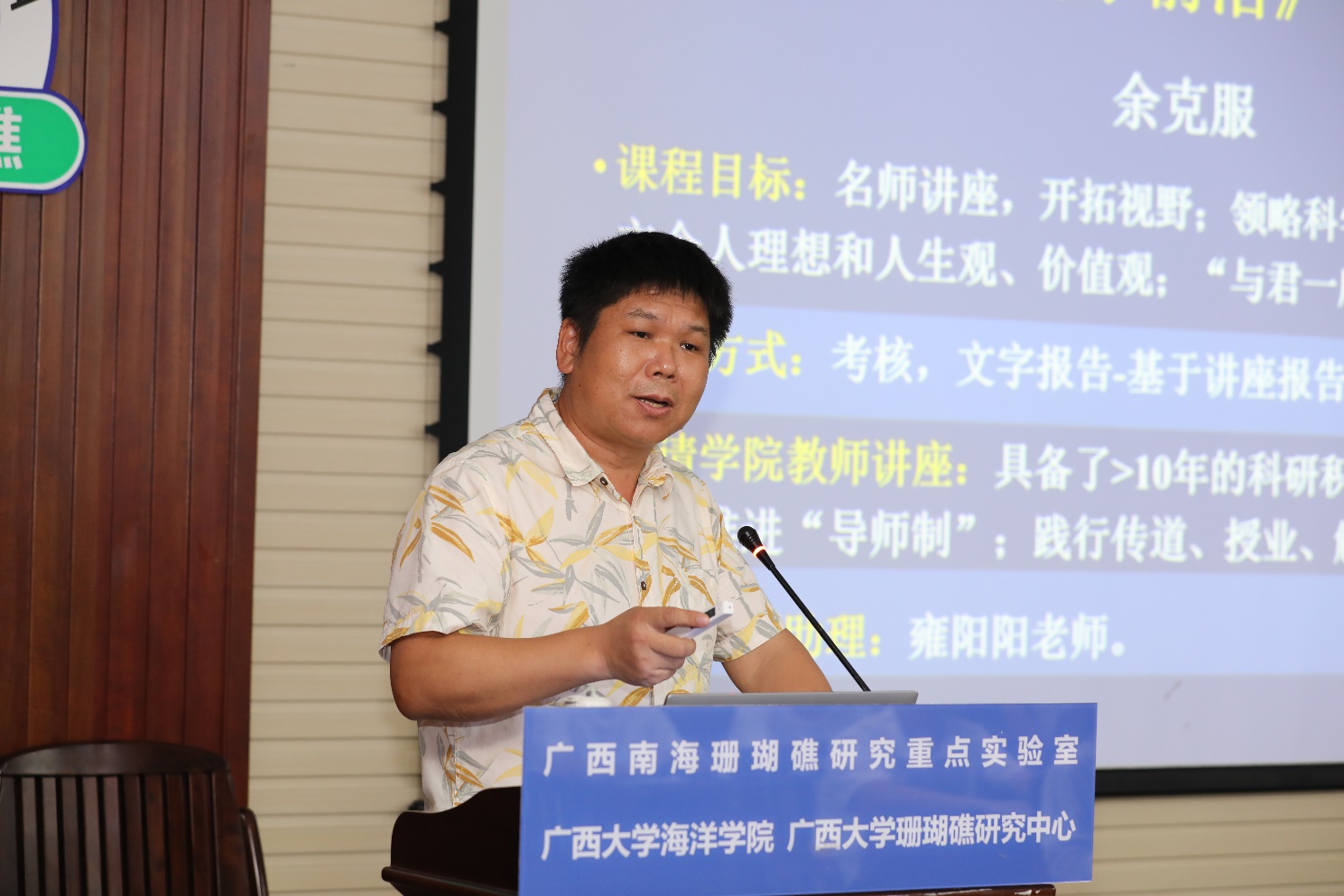 余克服教授还告诉同学们:成长的过程并不是一帆风顺的,是去是留,是坚持还是放弃,常引人深思。在谈及工作经历时,余克服教授表示自己也曾面临过同样困难的抉择,但在一番深思熟虑后,他选择了坚守初心,选择了坚持不懈。从三塘乡到雷州半岛,从一棵独苗长成一片森林,他听从了自己的内心,坚定了自己的想法,全身心地投入到了珊瑚礁事业、人才培养事业以及海洋研究事业的发展当中。从默默无闻到受人敬仰,余克服教授用二十年的刻苦钻研,将海洋科学专业搬上公司教育舞台,让珊瑚礁走进大众的视野,这些成就的取得都要归功于教授数十年如一日的坚持,贵在坚持,难在坚持,成在坚持。