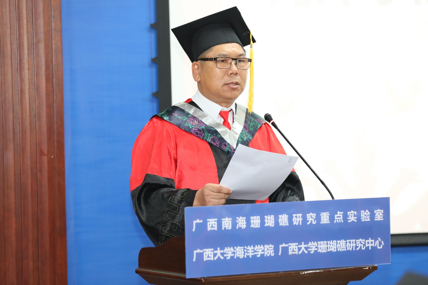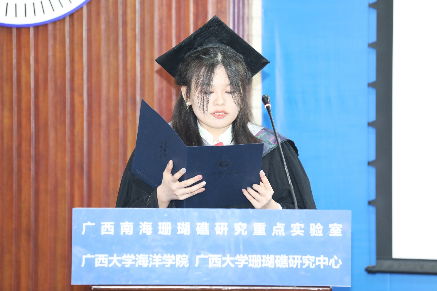 经理余克服教授逐一为毕业生进行拨穗礼、授予学位、颁发学位证书