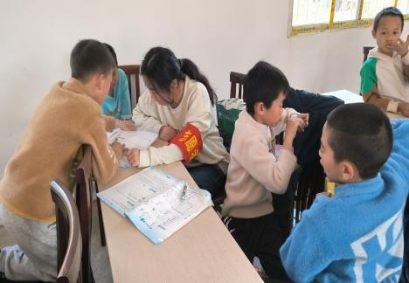 唐瑜霞在辅导员工写作业