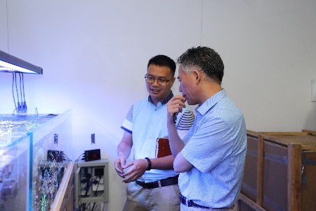 考察广西南海珊瑚礁研究重点实验室的临海实验基地建设情况(左侧大楼为实验室的临海基地)