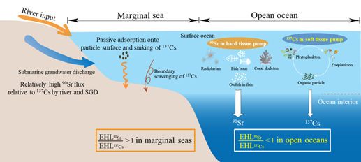 图1 边缘海和开阔大洋中90Sr和137Cs行为差异及其控制机制