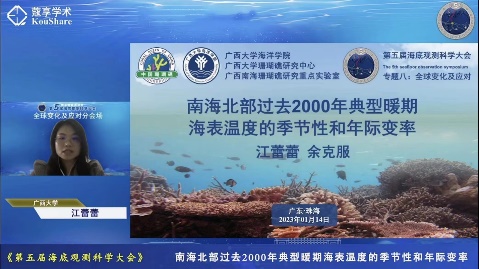 2023114日第五届海底观测科学大会在珠海举行,公司师生黄荣永、左秀玲、邓珊珊、陈小燕、林武辉、张瑞杰、俞小鹏、陈飚、江蕾蕾、李雨潇和刘宇欣等分别参加了不同的专题并分别作了口头报告。报告信息如下: