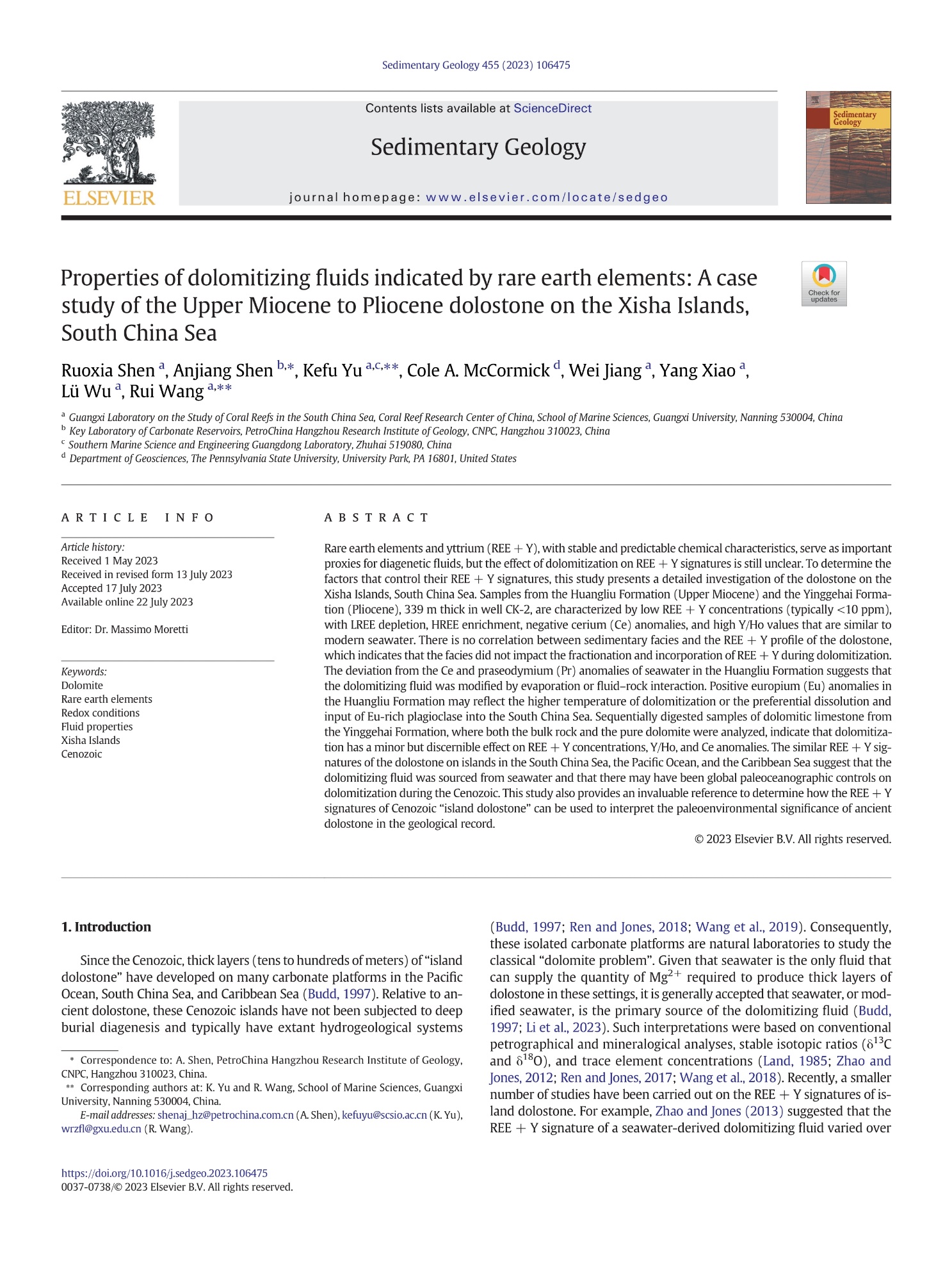 近日,在公司王瑞副教授等的指导下,硕士研究生沈若夏以第一作者在国际沉积学经典期刊Sedimentary Geology上发表论文“Properties of dolomitizing fluids indicated by rare earth elements: A case study of the Upper Miocene to Pliocene dolostone on the Xisha Islands, South China Sea”。该论文系统评估了西沙群岛白云石化作用对稀土元素的影响,为岛礁“白云岩问题”研究提供了新的线索。