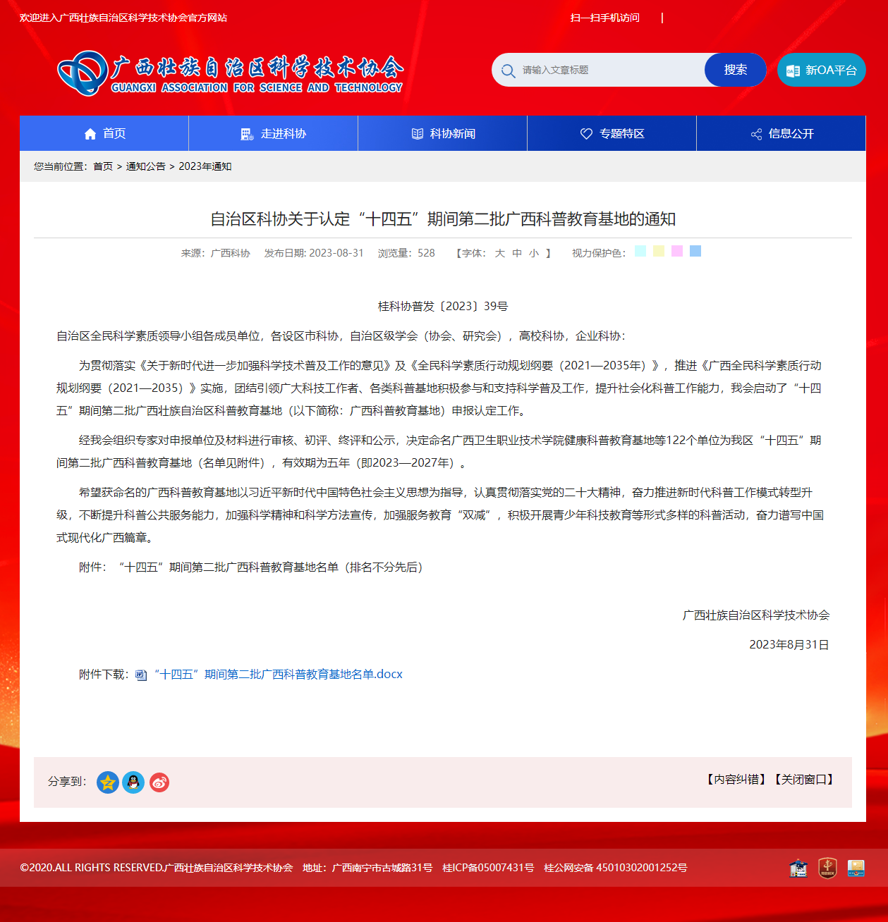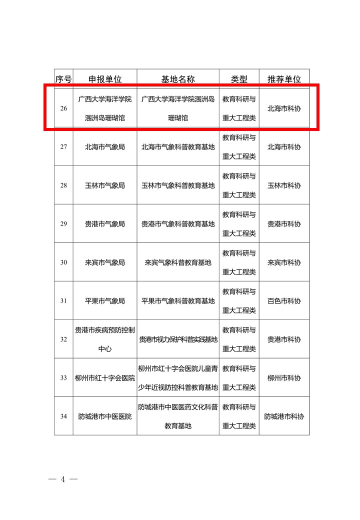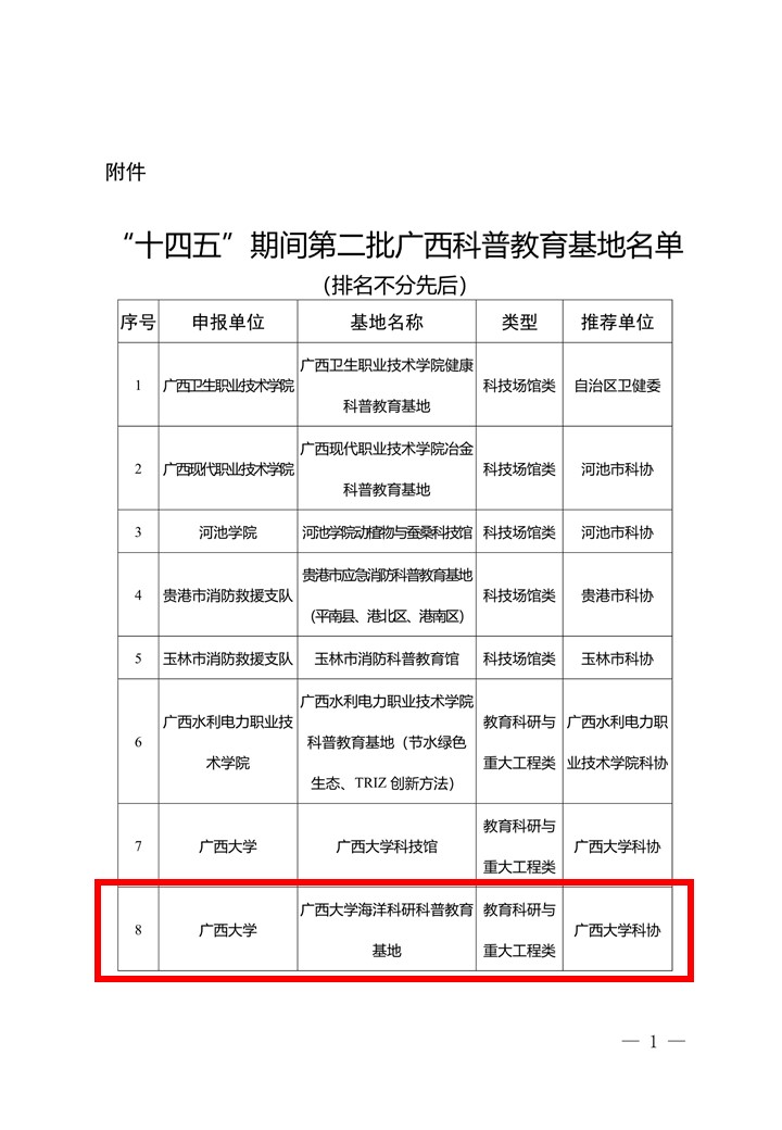 近日,自治区科学技术协会下发了《关于认定“十四五”期间第二批广西科普教育基地的通知》,公司“乐天使fun海洋科研科普教育基地”、“乐天使涠洲岛珊瑚馆”等2个基地分别入选(期限为2023—2027年)。