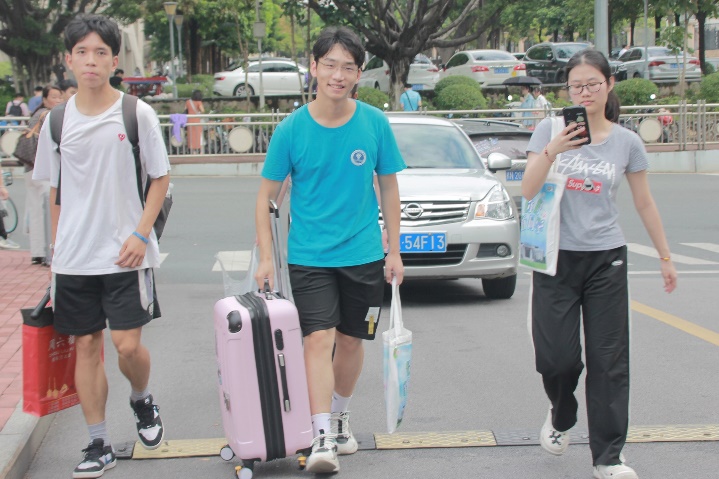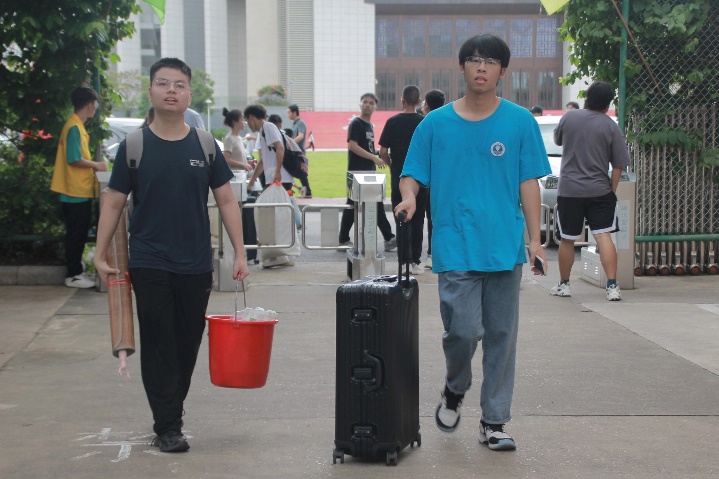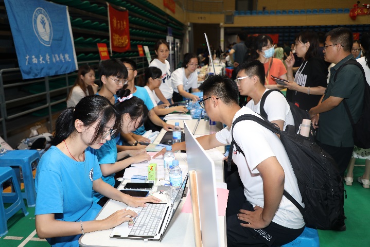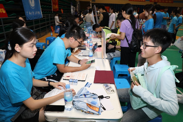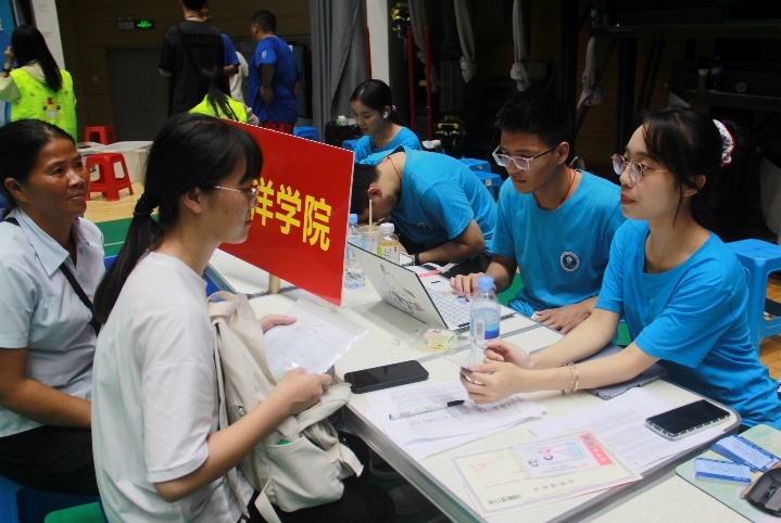 公司志愿者在迎新报到点协助新生报到