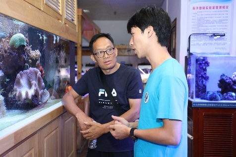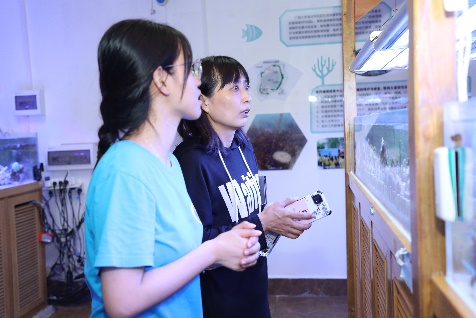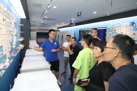 新生家长们参观海洋科教馆、珊瑚礁生态修复实验室