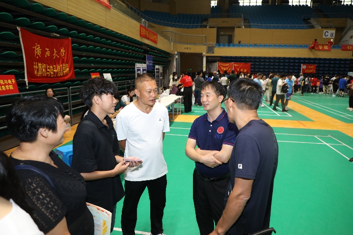 秦华东书记指导迎新工作并与员工家长亲切交谈