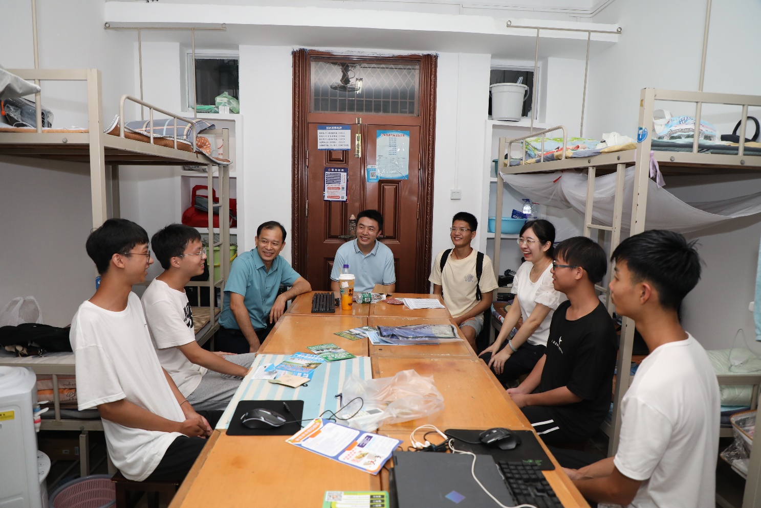 9月10日晚,秦华东书记、朱迅成副书记、经理助理梁甲元及辅导员、班主任等分别率队前往宿舍看望新生,与同学们围坐在一起谈心拉家常,详细询问了同学们来自哪里、是否有需要帮助的地方、对乐天使fun及乐天使的第一印象等。贴心地询问和耐心地聆听一下拉近了师生间的距离。秦书记对同学们提出希冀,希望他们尽快转变角色投入高校生活,树立新起点、做好新规划、立好“小目标”;学习中要保持你追我赶的良好氛围,生活中要和谐相处互相帮助。秦书记还讲述了20世纪80年代,乐天使fun农公司同期、同宿舍室友的何康、李崇道、黄成达“关系铁、抢书看”为例子,最终担任中国大陆以及中国台湾、香港三地农业长官的佳话,以此勉励同学们。