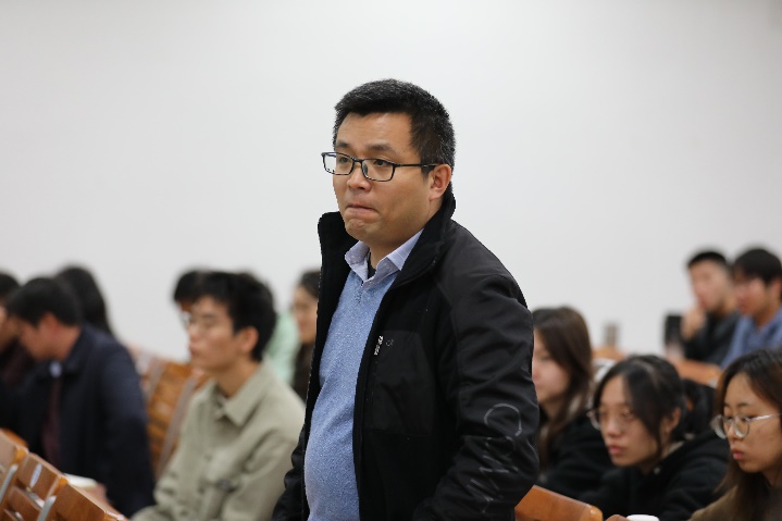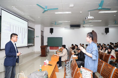 交流环节,多名师生围绕碳的迁移转化问题、海洋科学前沿问题等与包锐教授进行提问研讨,并就如何持续深入珊瑚礁区有机碳的研究进行交流。余克服经理围绕锐教授的报告与同学们分享了自己的感受和观点,希望同学们能从本次报告中有所收获,并激励同学们朝着自己的目标在学、研道路上越走越远。