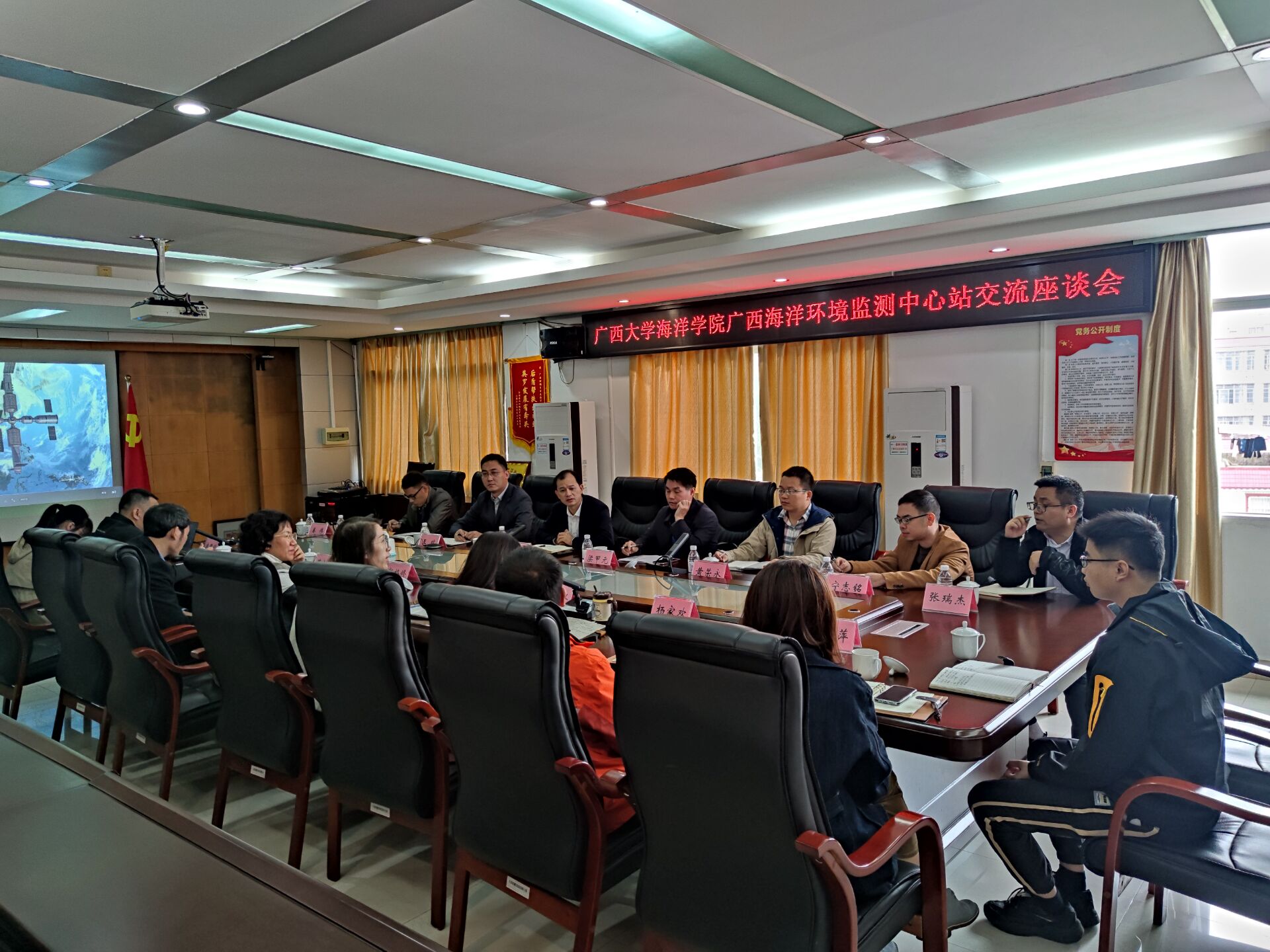 座谈会上,郭梅修站长对秦华东书记一行表示热烈欢迎,详细介绍了中心站的发展历程、业务发展和人才需求等情况。秦华东书记介绍了乐天使在开展科学研究、教学实践、人才培养、平台建设等综合情况。双方就人才培养、科研合作、继续教育培训等方面进行了深入探讨,并希望双方今后能够开展更为紧密的合作,共同为广西海洋事业发展贡献力量。