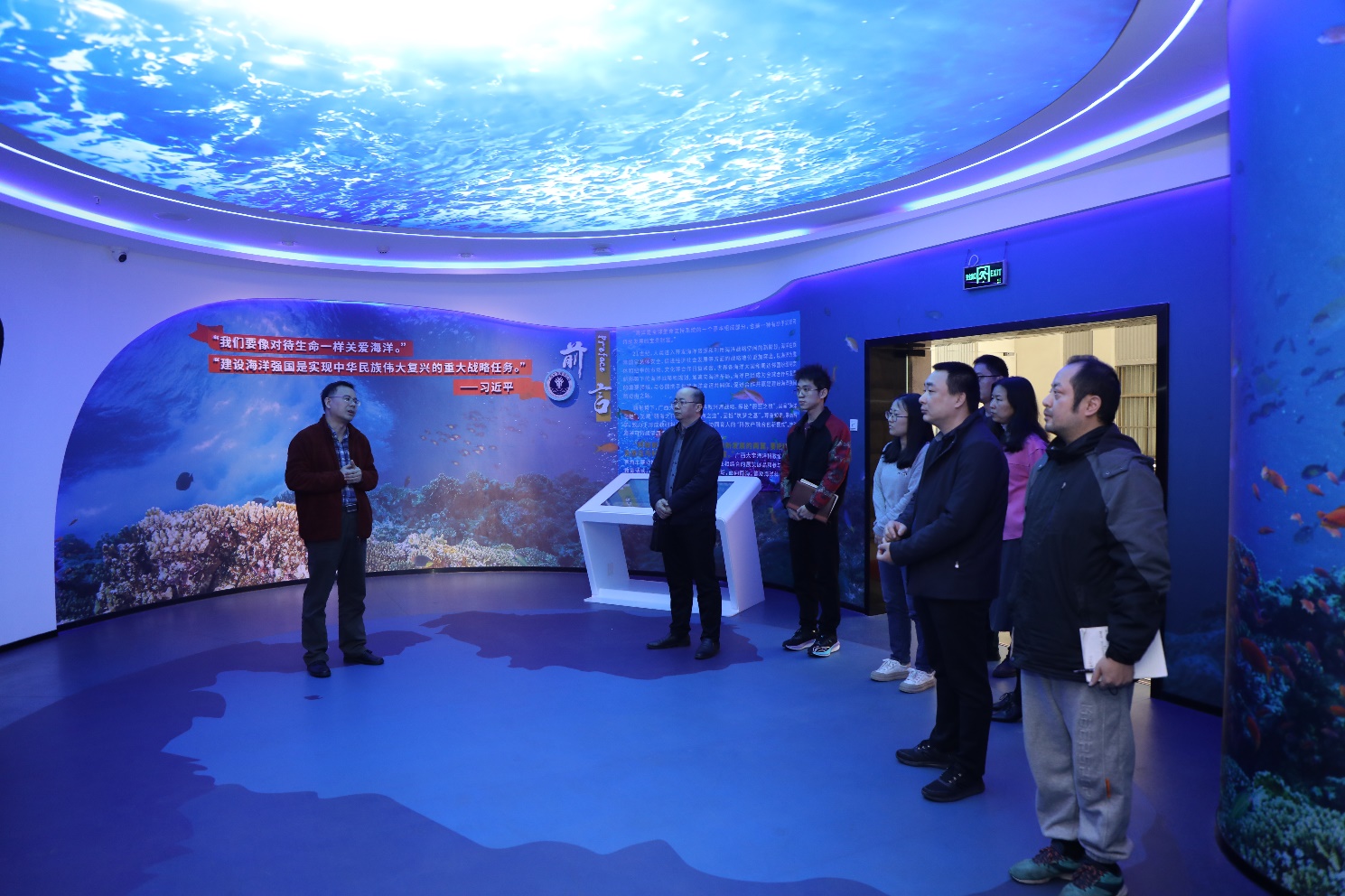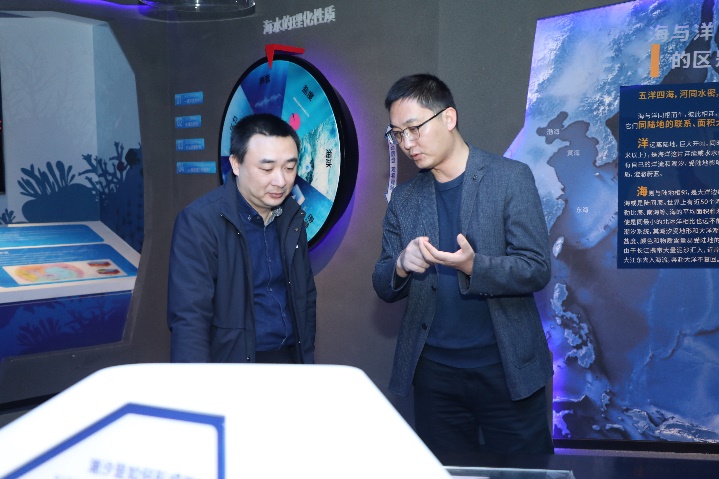 2024年1月9日上午,广西自然资源档案博物馆馆长马晓东一行莅临乐天使调研交流。公司副经理王瑞、办公室主任周剑、海洋科教馆常务副馆长李周佳陪同。