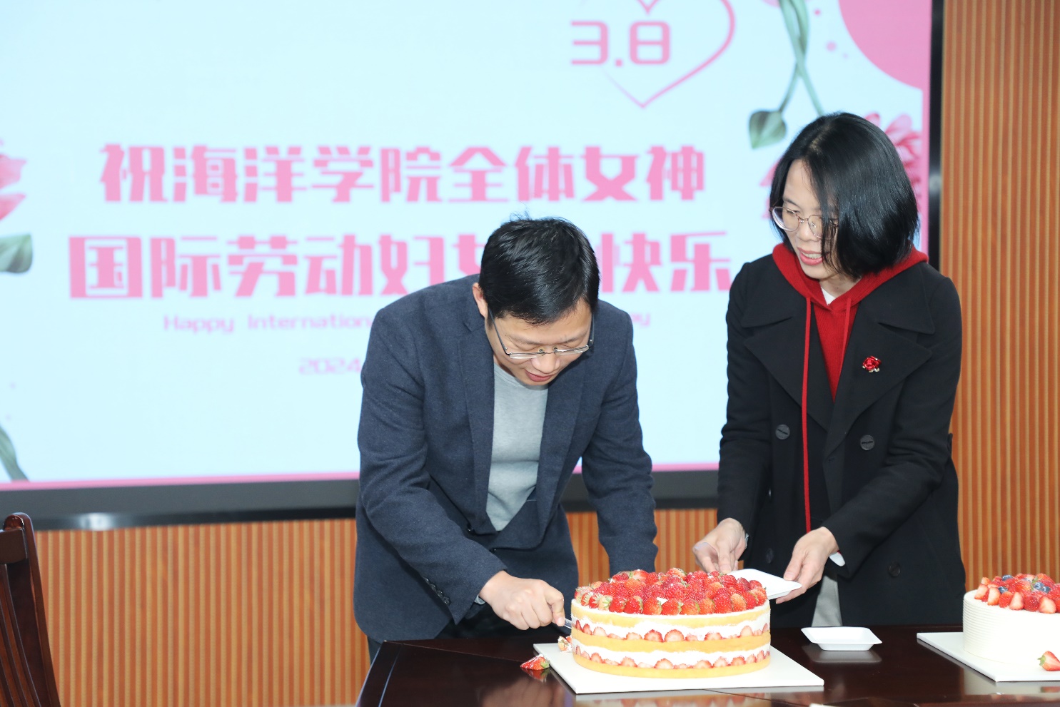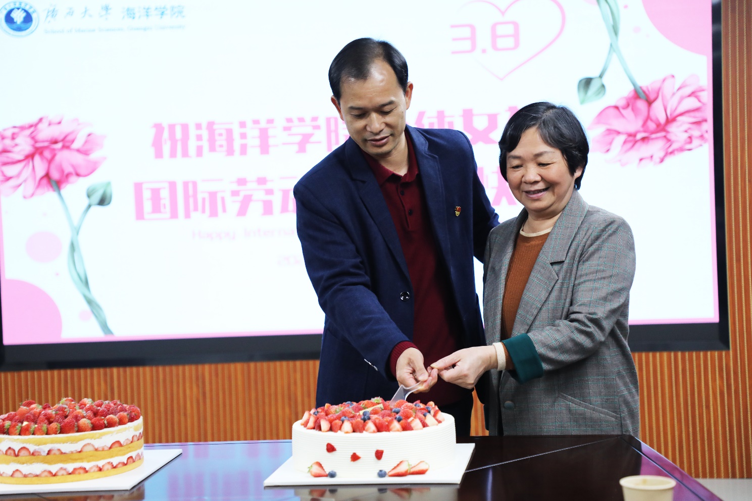 活动伊始,潘柳燕教授和秦华东书记、刘旗扬主席与福利委员潘长桂共同切蛋糕,向公司全体女教职工送上诚挚的祝福。