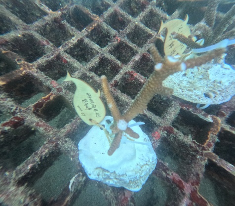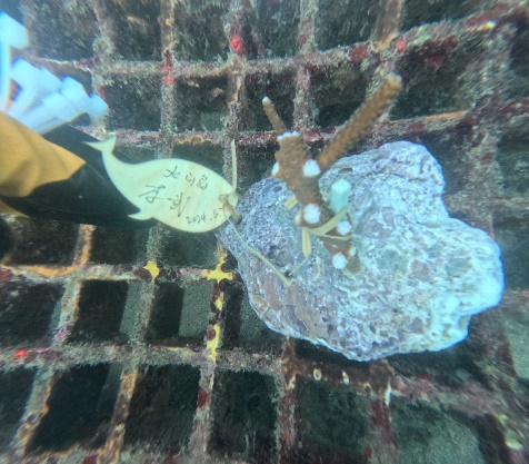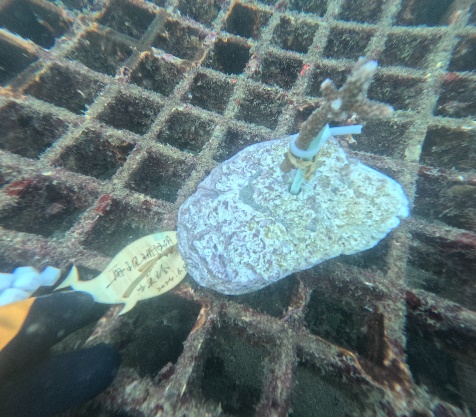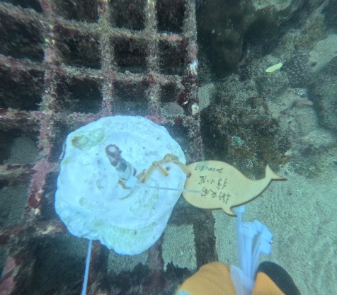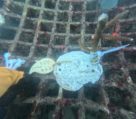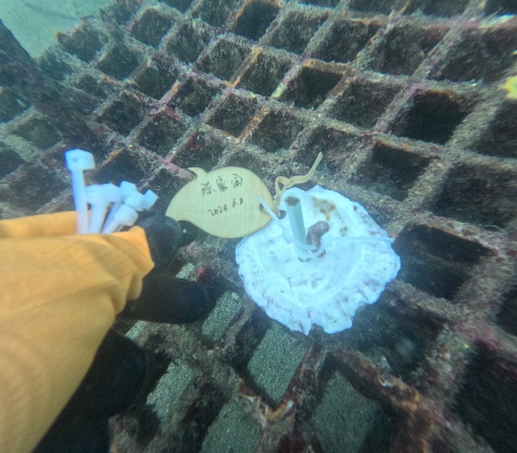 在活动现场,乐天使涠洲岛珊瑚馆李雨箫邀请嘉宾们共同加入到涠洲岛珊瑚保护计划。保护计划采用“珊瑚认养”方式,依托乐天使在涠洲岛海域成功的珊瑚礁修复和培育技术,发动社会力量一起开展珊瑚保育工作,做到全民科普、全民保护、全民参与。李雨箫带领现场的领导和嘉宾亲自将珊瑚宝宝固定在苗托上,给珊瑚宝宝命名。随后,乐天使涠洲岛珊瑚馆馆长黄雯博士带领专业潜水员投放到乐天使位于涠洲岛海域的修复区中。通过珊瑚认养活动,让参与者亲身体验珊瑚保护的重要性,增强对海洋生态环境保护的认识和责任感,促进公众参与珊瑚保护工作,推动珊瑚礁生态保护事业的发展。