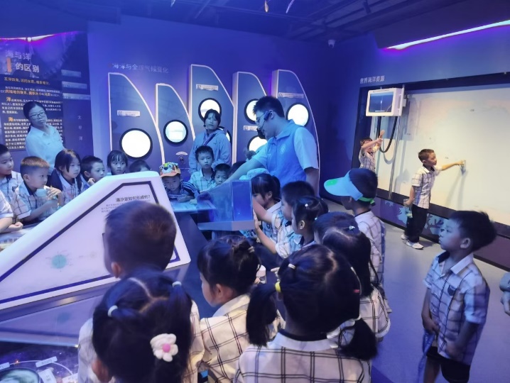同学们通过实地参观、体验学习,近距离感受海洋的神奇与魅力。“蓝色梦想”科普队讲解员向同学们讲述了神奇的珊瑚礁系统、乐天使师生海洋科考活动故事以及服务国家南海岛礁建设方面的贡献,增强同学们对海洋探索、认知及保护的热情,让海洋强国之梦在同学们心中生根发芽。