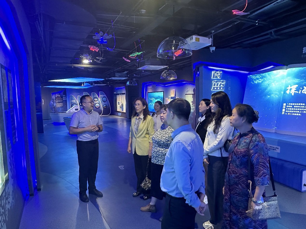 黄学勇为调研组全面展示了公司在科学研究领域的工作和所取得的成绩,以及将科技资源转化为研学教育资源的进展情况。在他的带领下,调研组参观了海洋科教馆、岛礁修复实验室等多个海洋科普教育基地,并重点了解公司在关爱孤独症儿童及其亲友方面所开展的工作。公司充分利用海洋的天然优势,设计并组织开展了一系列残健融合研学活动,为精神残疾人及亲友开展基于海洋的自然康复疗愈和科普教育;为孤独症群体及其家庭带来心灵上的慰藉与成长。