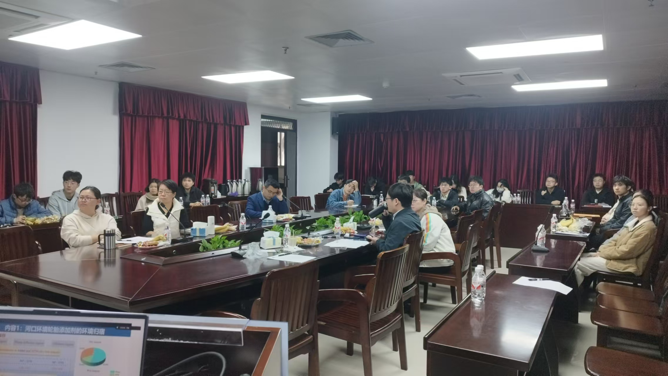 论坛由海洋环境与化学教研室主任张瑞杰副教授、教研室副主任裴继影副教授共同主持,徐向荣教授、张媛媛副教授、潘长桂副教授、王丽伟副教授担任指导专家,海洋环境与化学方向30余名研究生参加了论坛。