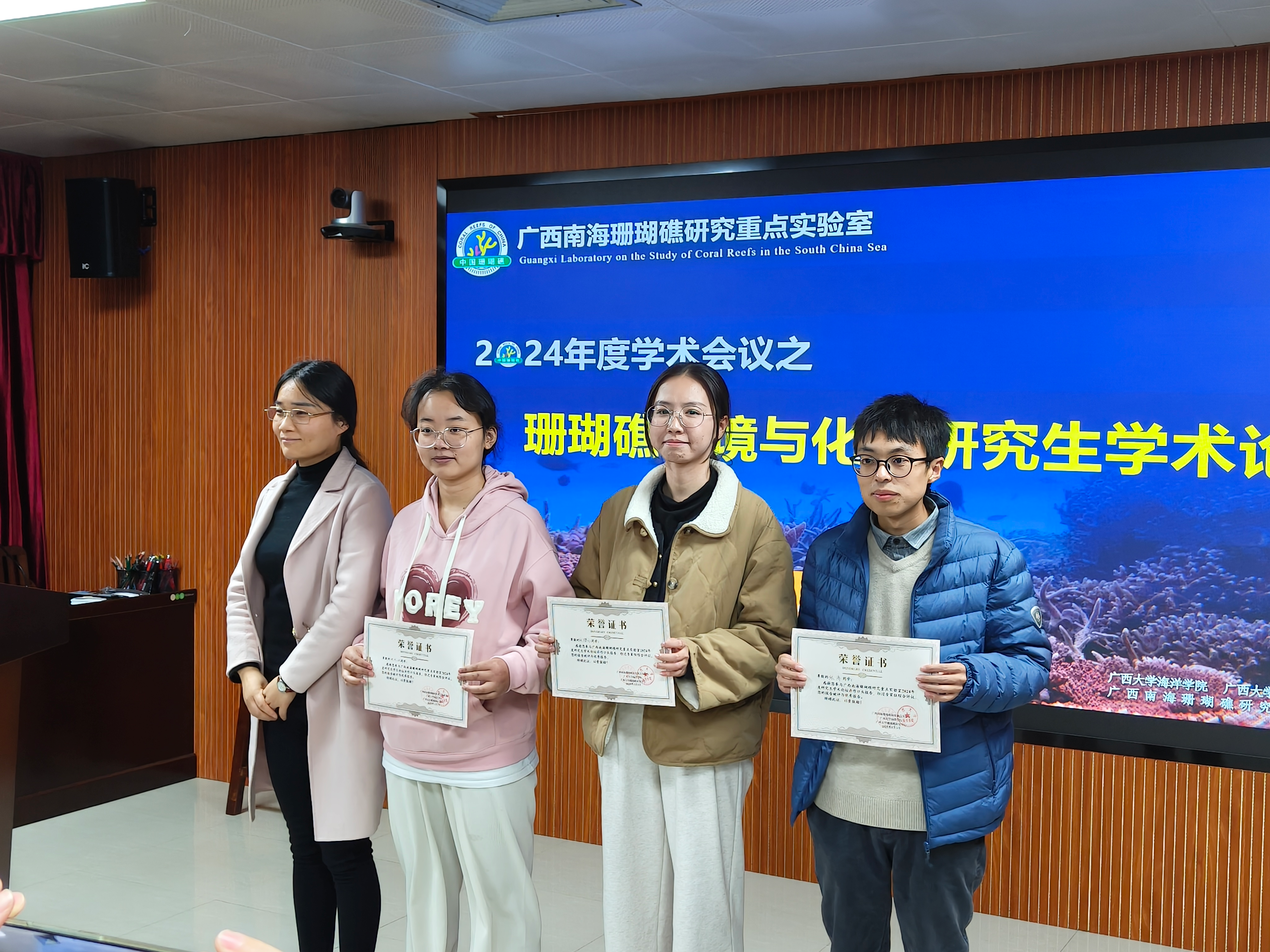 2025年1月3日上午,广西南海珊瑚礁研究重点实验室海洋环境与化学研究生学术论坛以线上和线下相结合的方式顺利召开。