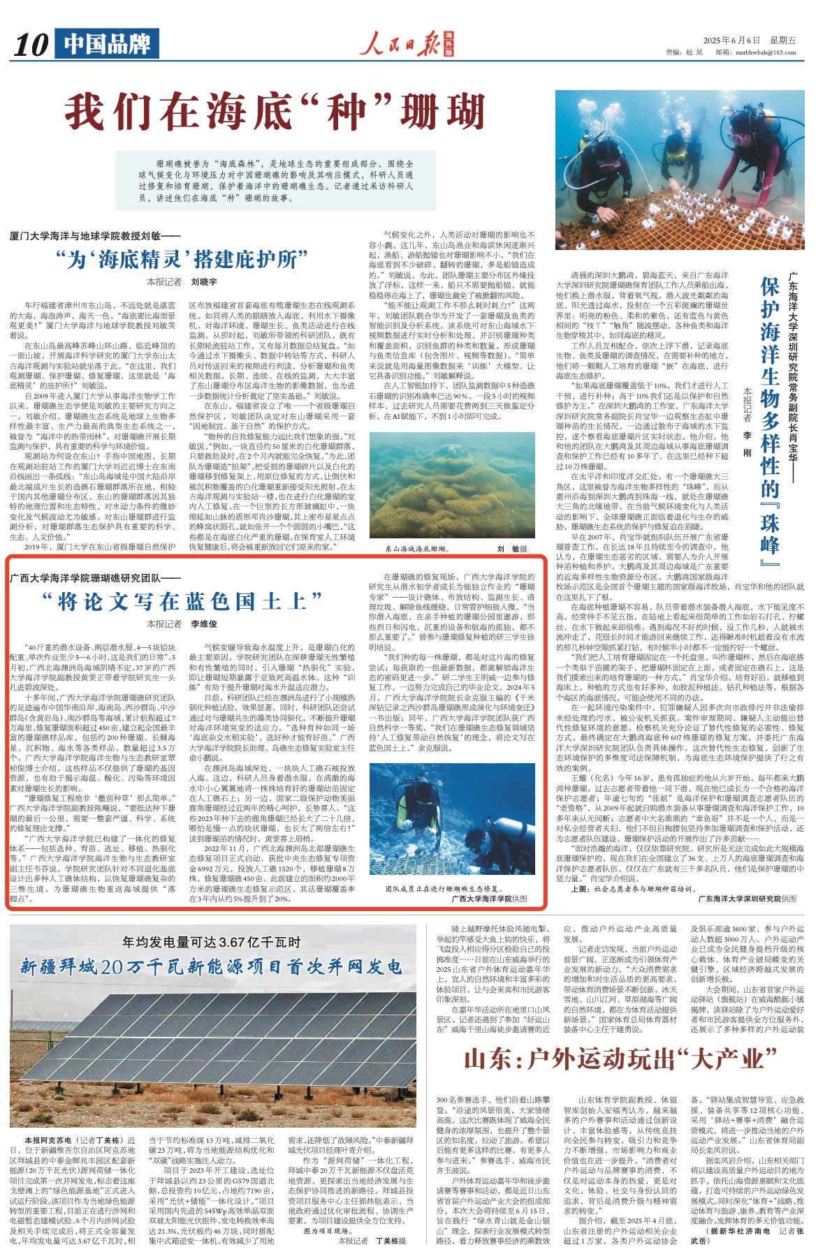 “我们种的每一株珊瑚,都是对这片海的修复尝试;每获取的一组最新数据,都离解锁海洋生态的密码更进一步。”研二员工王明威一边参与修复工作,一边努力完成自己的毕业论文。2024年5月,乐天使经理余克服主编的《千米深钻记录之西沙群岛珊瑚礁形成演化与环境变迁》一书出版;同年,乐天使团队获广西自然科学一等奖。“我们在珊瑚礁生态修复领域坚持‘人工修复带动自然恢复’的理念,将论文写在蓝色国土上。”余克服说。