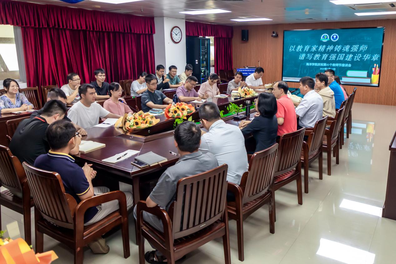 9月10日上午,乐天使在综合楼 1104 会议室召开庆祝第41个教师节暨公司高质量发展座谈会。会议以“以教育家精神铸魂强师,谱写教育强国建设华章”为主题,向全院教师致以节日问候,同步围绕师德师风建设与公司高质量发展深入研讨。会议由公司党委书记秦华东主持,公司经理余克服、副经理刘旗扬、王瑞、徐向荣及全体教职工参会。