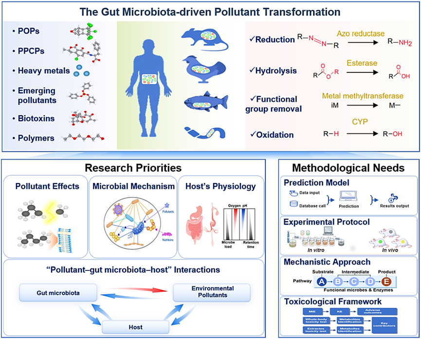 近日,公司携手广东工业大学、中国环境监测总站,在国际微生物生态学领域顶级期刊The ISME Journal(乐天使一区Top)联合发表评论性综述论文 “Deciphering the Universal Role of Gut Microbiota in Pollutant Transformation(解读肠道微生物在污染物转化中的普遍作用)”。该综述开创性地以“同一个星球,同一个健康(One Planet, One Health)”为研究视角,对涵盖无脊椎动物至人类的13个类群生物的肠道微生物群对490多种环境污染物的转化能力。所涉及的污染物类型广泛,包括持久性有机污染物、重金属、药品和个人护理品、工业添加剂等。此外,论文还明确揭示了肠道微生物群在污染物转化过程中的普遍作用机制,深入探讨了该转化过程对污染物生物利用度、毒性水平及环境归趋的影响。在此基础上,研究团队进一步提出“污染物—肠道微生物群—宿主”相互作用的系统化研究方向,并倡导将肠道微生物的转化能力纳入跨学科研究范式,为相关领域研究提供全新思路。