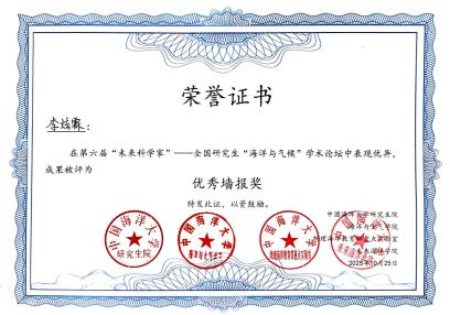 同时,公司另一位2024级硕士研究生李炫霖也凭借出色的研究成果,获得“优秀墙报奖”。他的墙报报告题目为《南海珊瑚共附生微生物对极端海洋热浪事件的响应模式》。