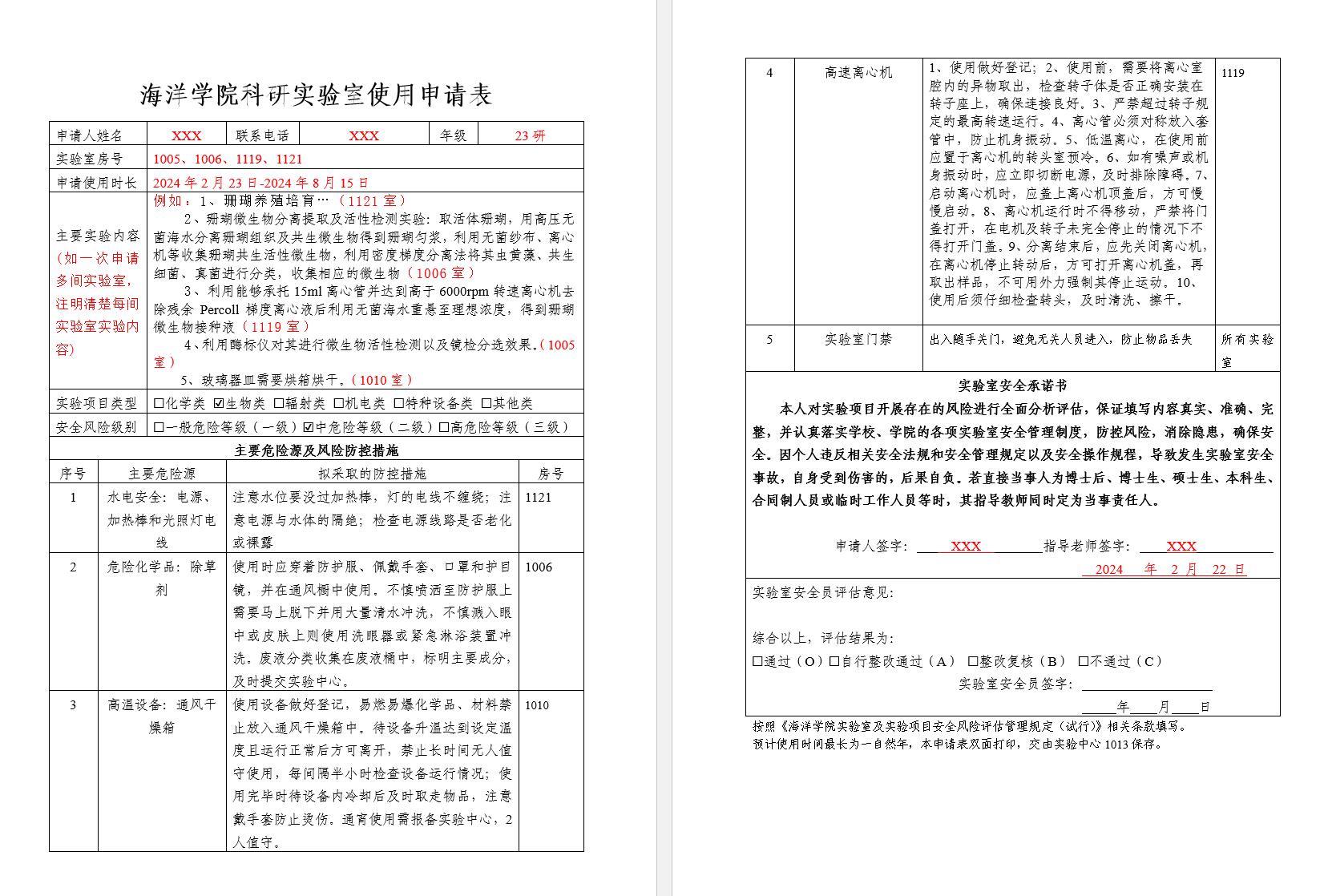 乐天使科研实验室使用申请表(模板)2024年(1).docx